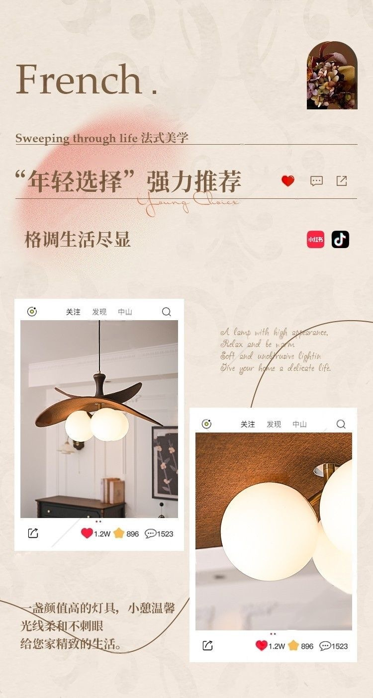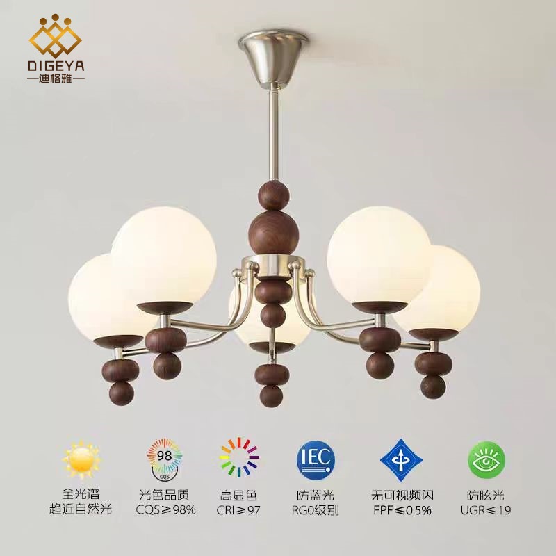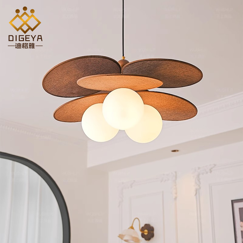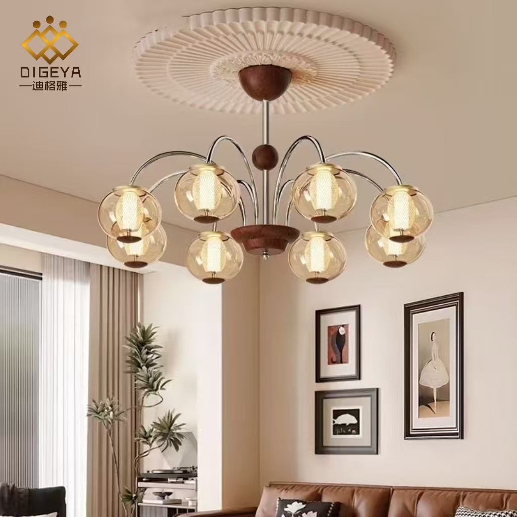 迪格雅法式中古风高端客厅吊灯复古胡桃木卧室餐厅艺术氛围感吊灯