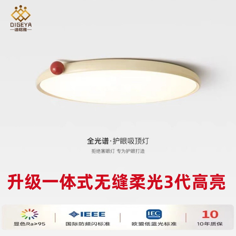 迪格雅フランスクリーム風寝室超薄小乳豆吸上灯シンプル子供部屋全スペクトル保護眼灯