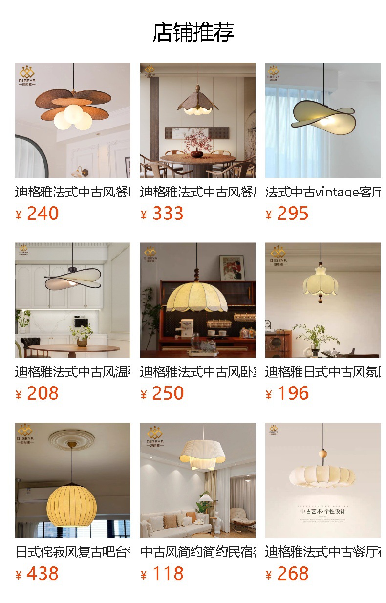 迪格雅法式中古风餐厅卧室魔豆灯复古书房茶室氛围感拉菲草吸顶灯