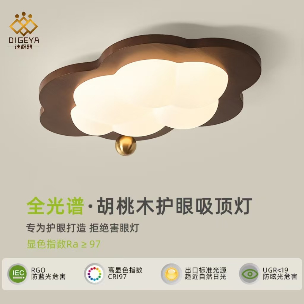 迪格雅中古卧室实木护眼灯具创意云朵儿童房全光谱护眼装饰吸顶灯