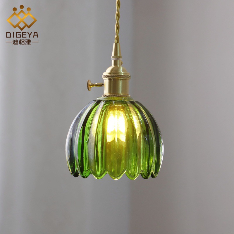 日本のレトロな全銅ガラス琥珀の小さな花シングルヘッド寝室バーレストランミルクティー北欧シンプルなシャンデリア