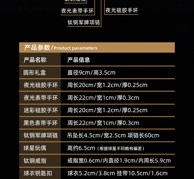 サッカーファン夜光シリコンスポーツ手環チタン鋼球星ネックレス指輪ファン記念品周辺ギフトボックス