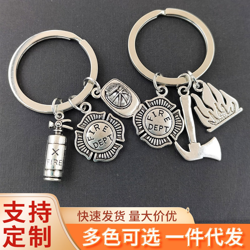 欧米の消防部門消防士キーチェーンメンズ消火器ペンダント消防車消火器消防帽キー
