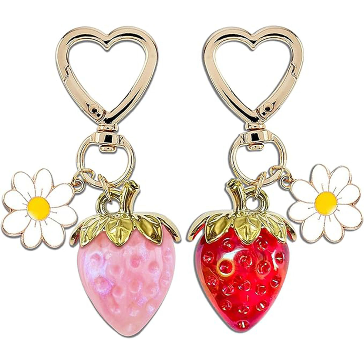 かわいいイチゴキーチェーン、かわいいハートフラワーデイジーキーチェーンアクセサリー装飾女の子財布ギフト