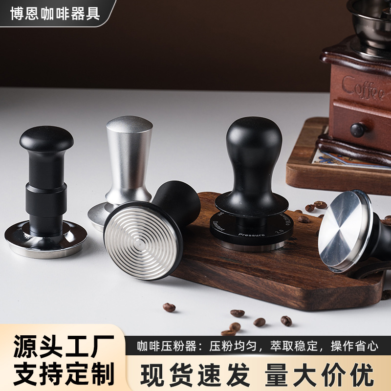304不锈钢咖啡压粉器带刻度可调节按压式恒力压粉器平衡定力粉锤