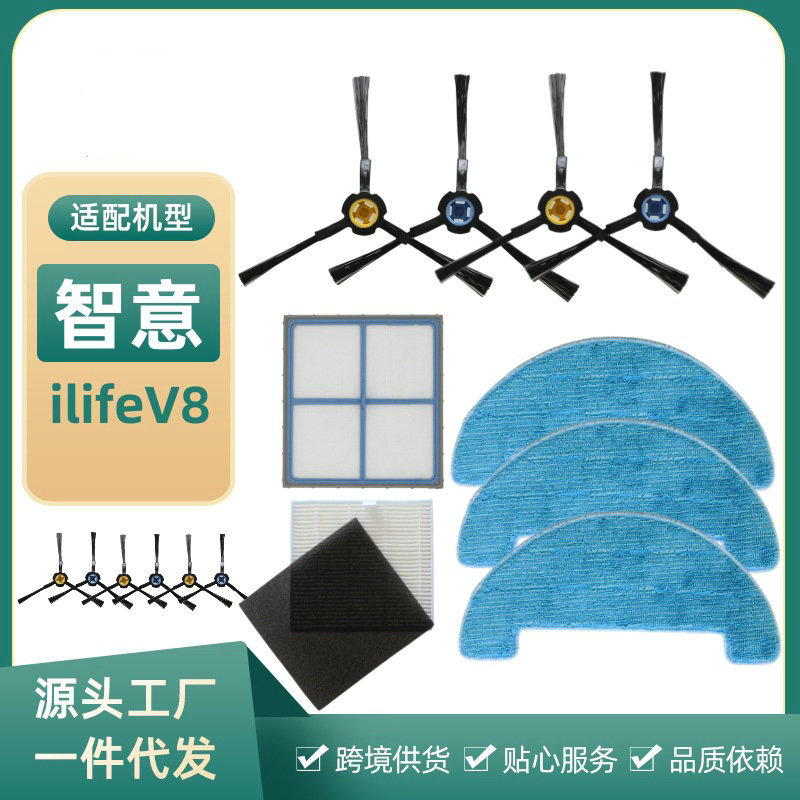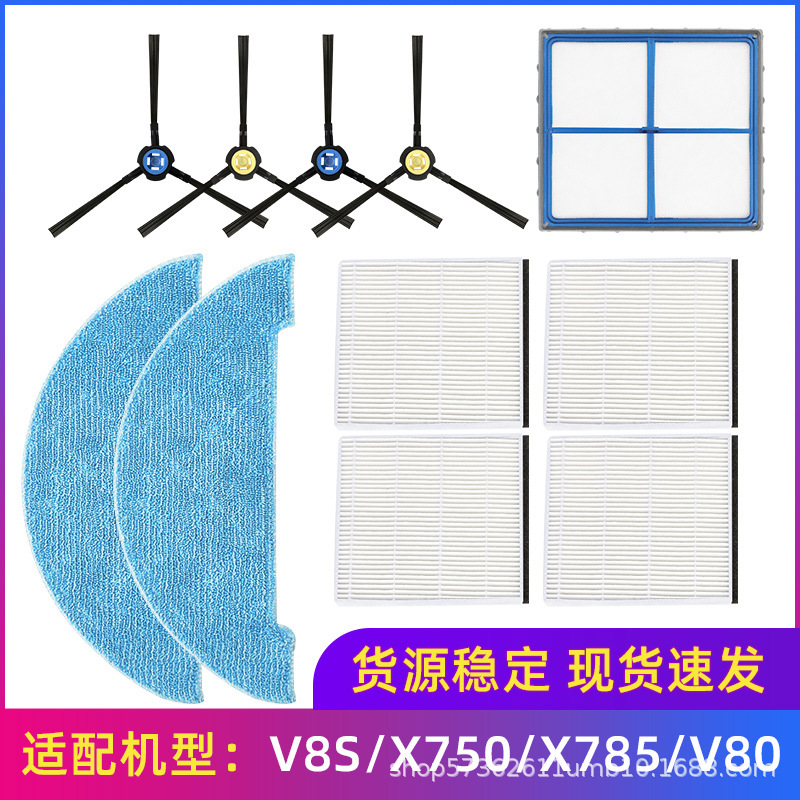 适用于ilife扫地机器人配件V8S/X750/X785/V80滤网滤芯抹布边侧刷