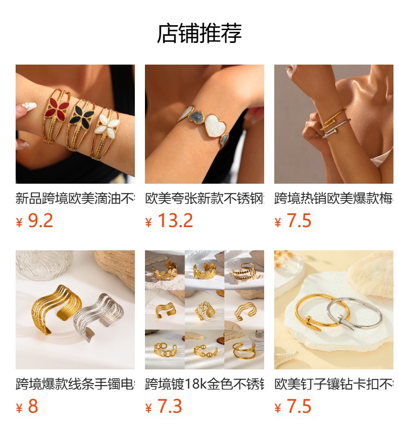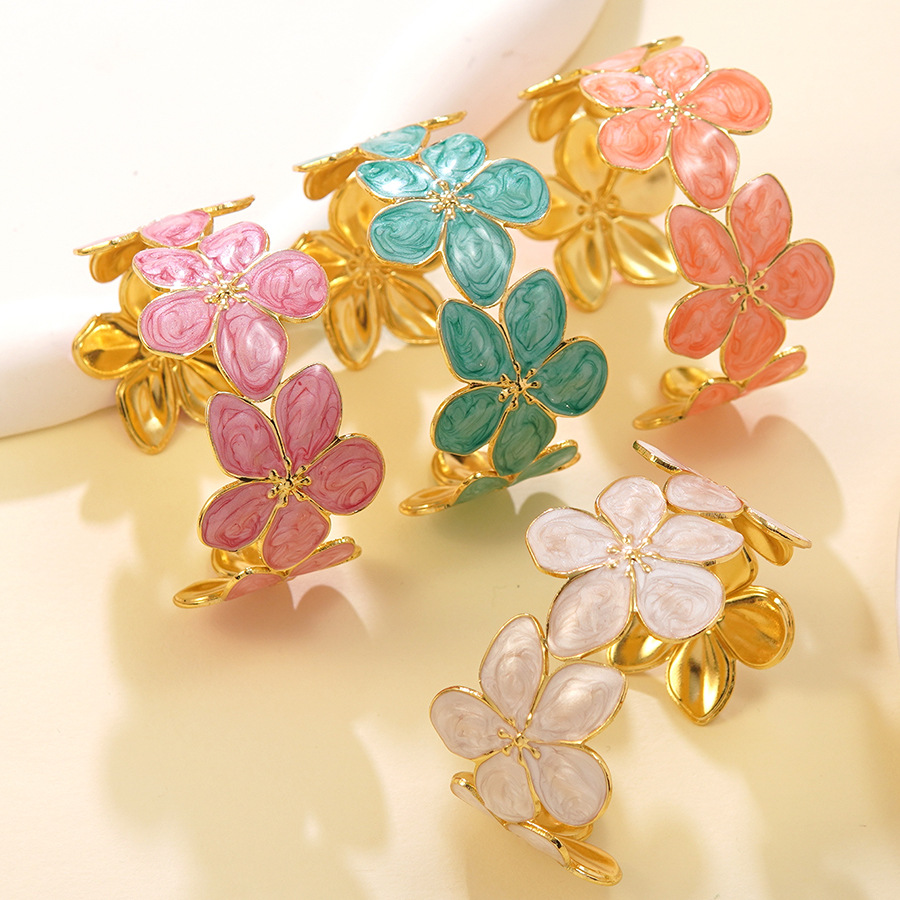亚马逊热销滴油花朵不锈钢手镯女高级感个性百搭花卉C型开口手镯