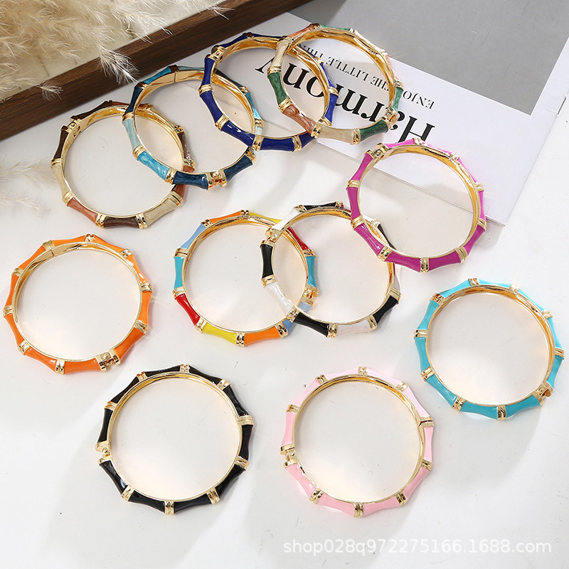 跨境欧美中东时尚波西米亚珐琅彩合金手镯欧美高级感滴油节节高百