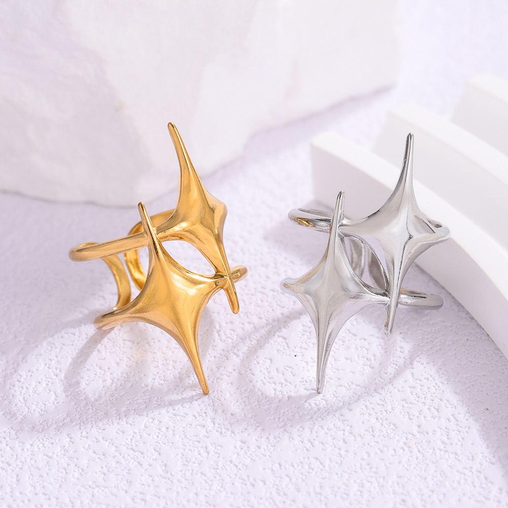 ヨーロッパとアメリカのトレンディなホリデーシーシェルヒトデ誇張ステンレス鋼リング女性用非退色 18K ゴールドジュエリー