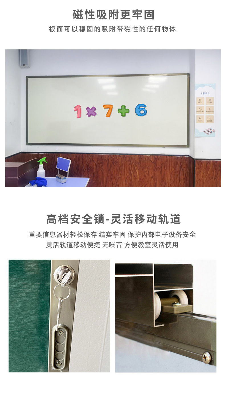教室推拉绿板组合式绿板教学培训平面黑板磁性书写板上下升降绿板