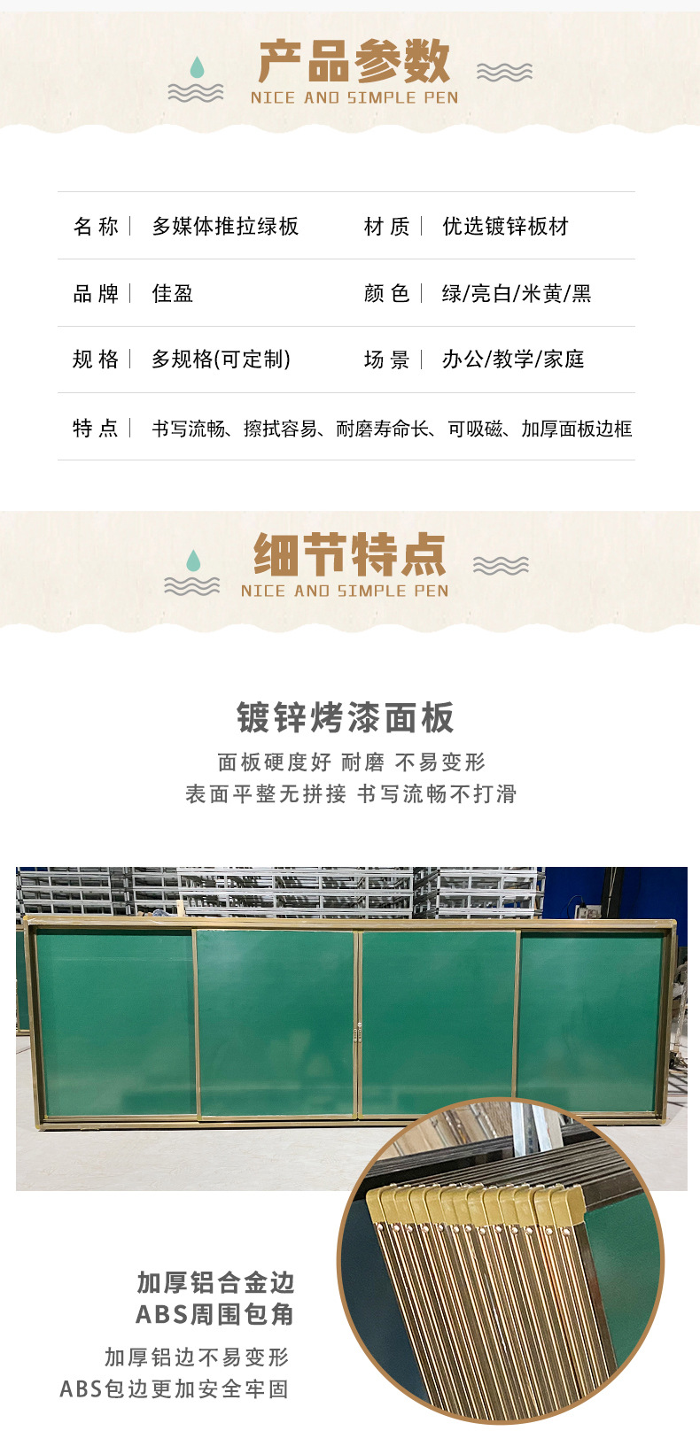 规格 侧置推拉黑板/中置推拉黑板4块板/中置推拉米黄板4块板
