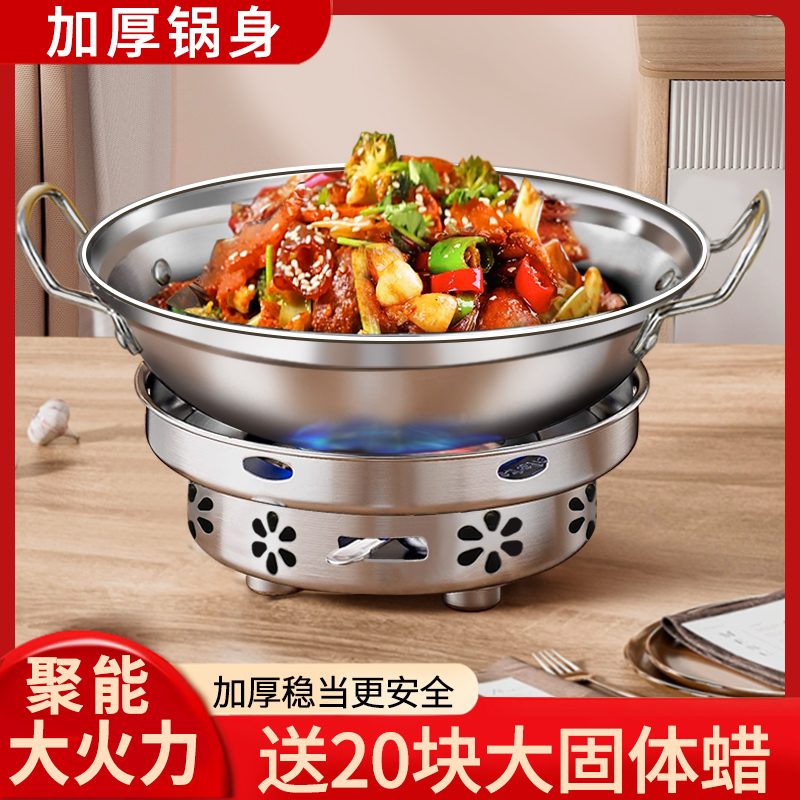 不锈钢酒精炉小火锅液体固体户外家用学生宿舍一人一锅酒精锅加厚