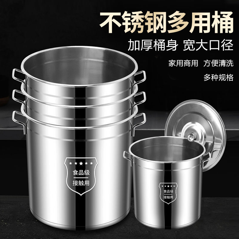 304 ステンレス鋼のバケツ蓋付きラウンドバケツ大型スープポット商業用厚みのある家庭用バケツオイルバケツ煮込みポットステンレス鋼のスープバケツ