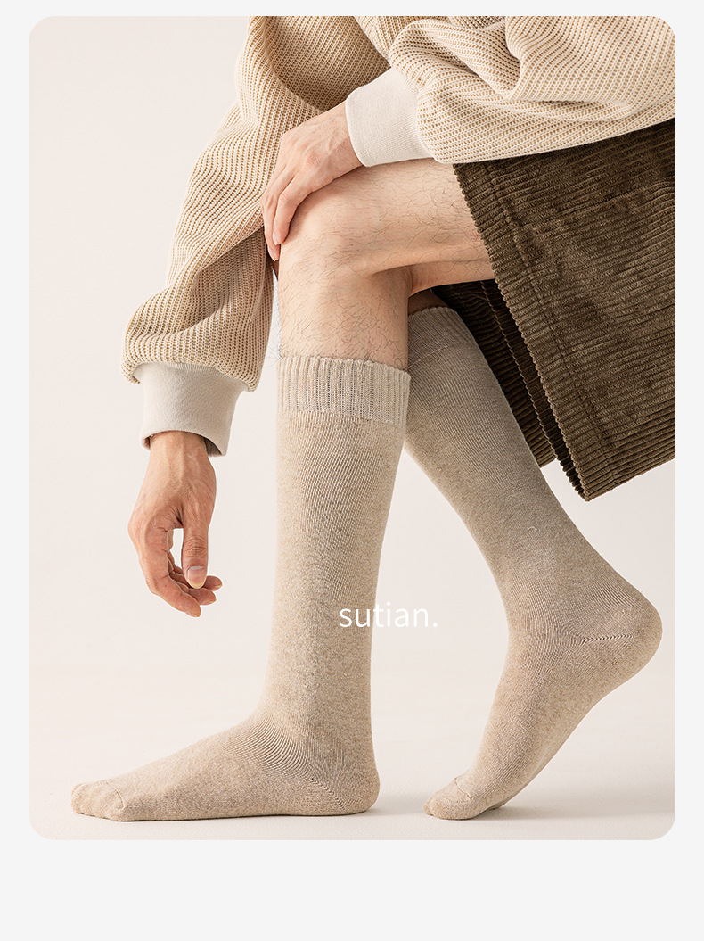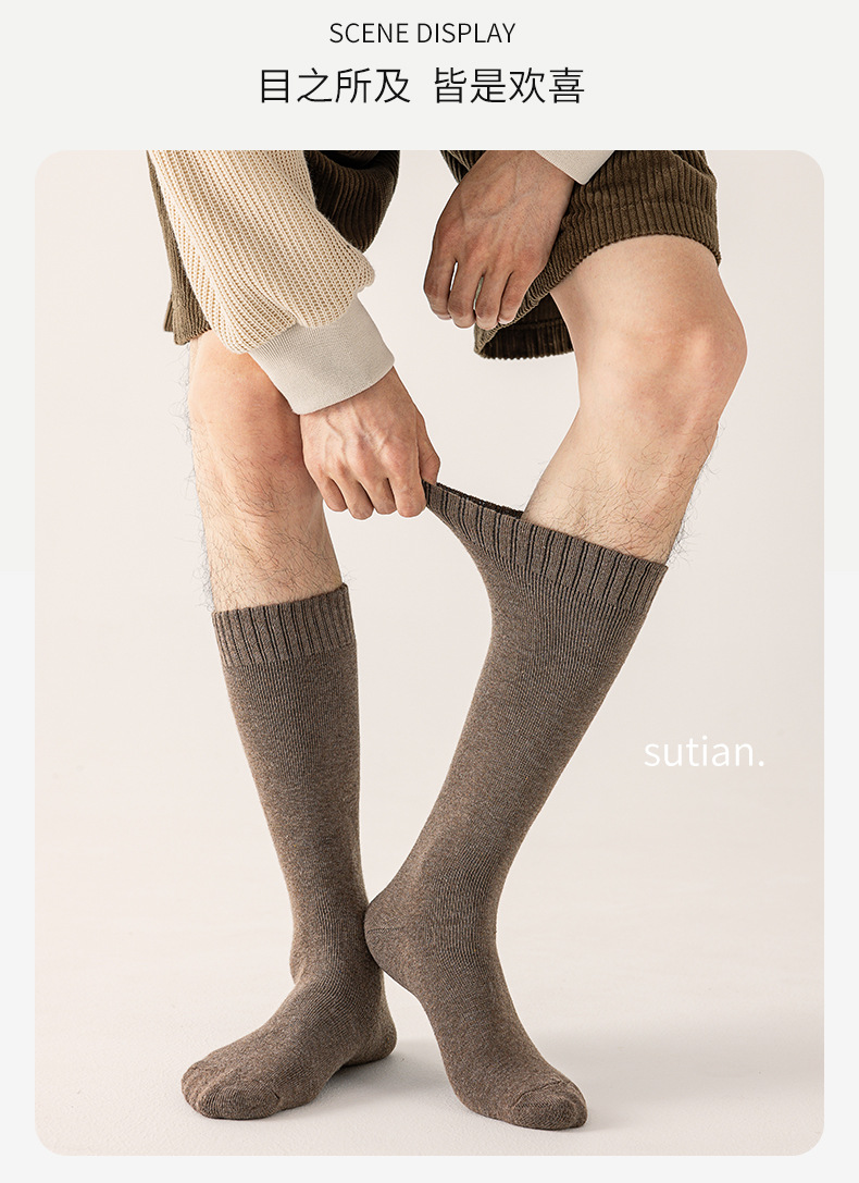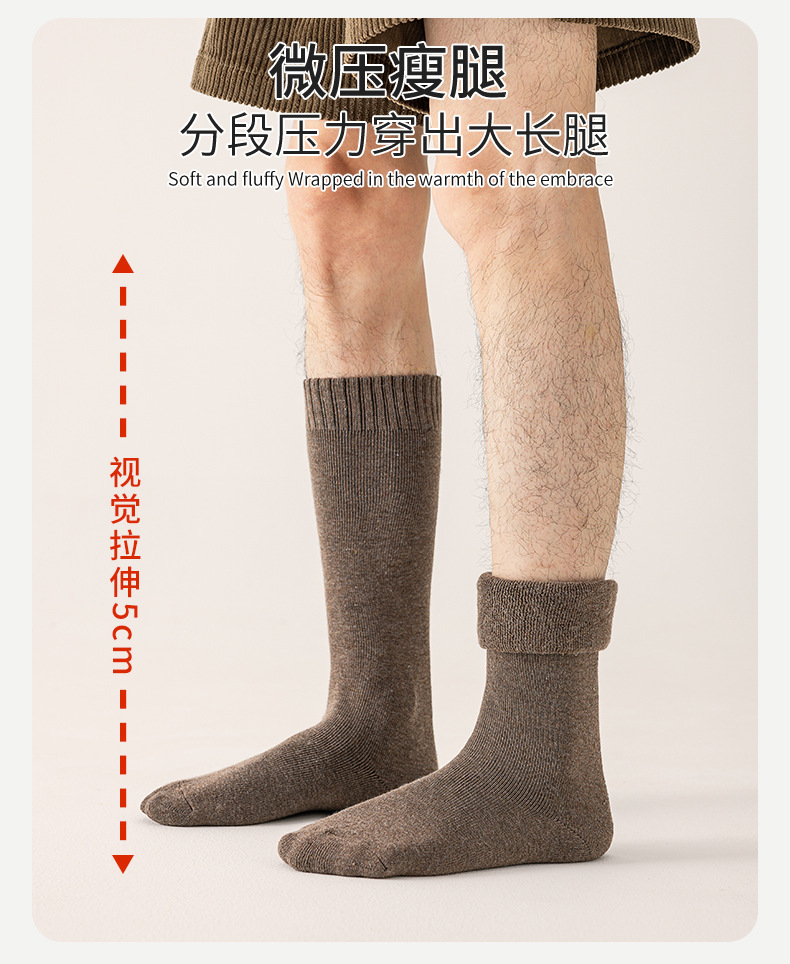 冬季小腿袜男长筒袜秋冬款加绒加厚保暖长袜男士居家睡眠袜老人袜