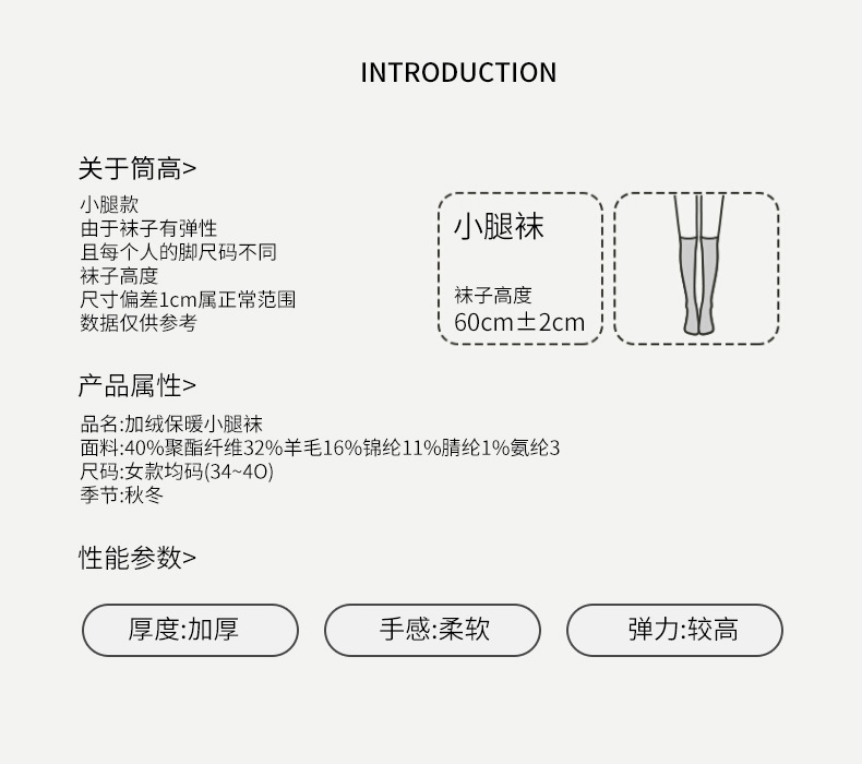 颜色 【F0112中筒】-1号白色一双,【F0112中筒】-2号燕麦色一双,【F0112中筒】-3号黑色一双,【F0112中筒】-4号马奇棕色一双,【F0112中筒】-5号落叶棕色一双,【F0112中筒】-6号深咖色一双,【F0112中筒】-7号深灰色一双,【E0602小腿】-1号白色一双,【E0602小腿】-2号燕麦色一双,【E0602小腿】-3号黑色一双,【E0602小腿】-4号马奇棕色一双,【E0602小腿】-5号落叶棕色一双,【E0602小腿】-6号深咖色色一双,【E0602小腿】-7号深灰色一双,【G0501过膝】-1号白色一双,【G0501过膝】-2号燕麦色一双,【G0501过膝】-3号黑色一双,【G0501过膝】-4号马奇棕色一双,【G0501过膝】-5号落叶棕色一双,【G0501过膝】6号深咖一双,【G0501过膝】-7号深灰色一双,G0501GX毛圈-8号奶白一双