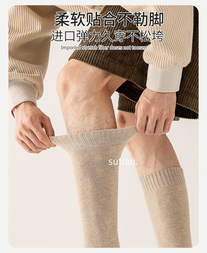 过膝袜子男士加长大腿袜男长筒袜秋冬6%羊毛袜男保暖长袜长腿男袜