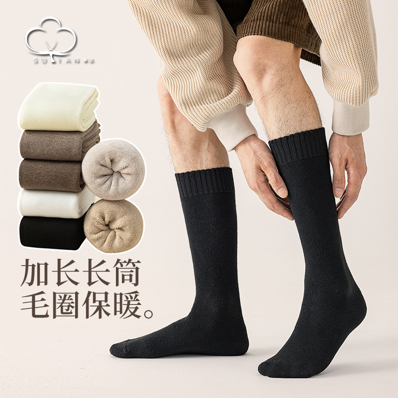 秋冬款睡眠袜男士冬季加绒长筒袜子男中筒袜加厚保暖男袜御寒抗冻