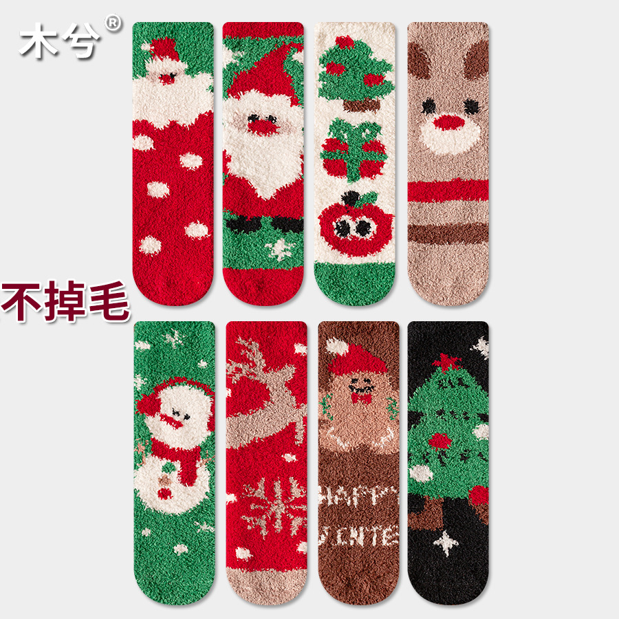 2025新款不掉绒珊瑚绒睡眠袜女士日系可爱圣诞节不掉毛圣诞老人袜
