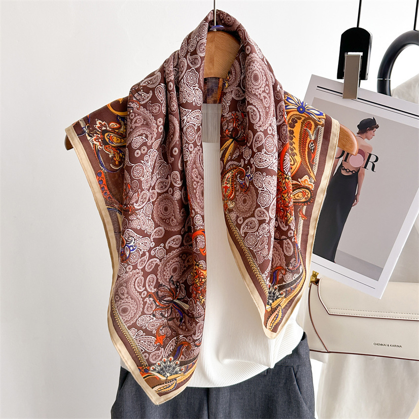 70枚のシルクスカーフ、高級韓国ファッション、多用途、プロ仕様のイミテーションシルクスカーフ、女性用レトロプリントシルクスカーフ