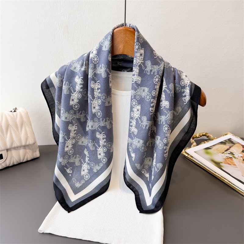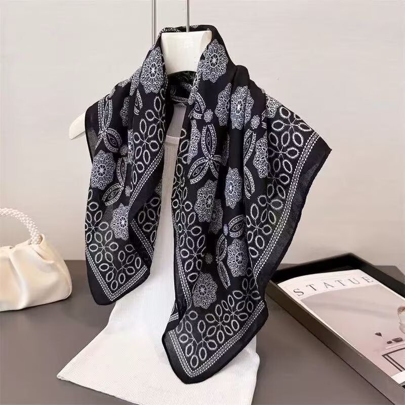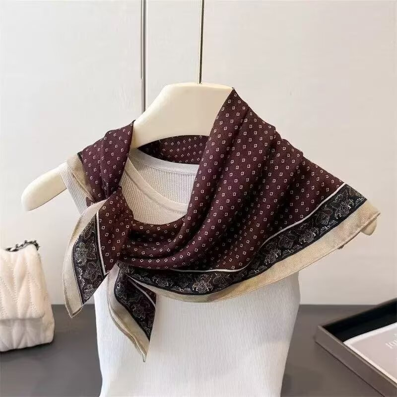 2025春シルクスカーフ【ニッチ】北欧風シンプルプリーツ小判スクエアスカーフ新作韓国インス女性用小判シルクスカーフ