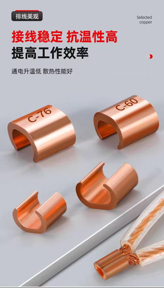 铜C型线夹压线卡扣电缆分支铜接头并线压线端子CCT型铜并接线夹
