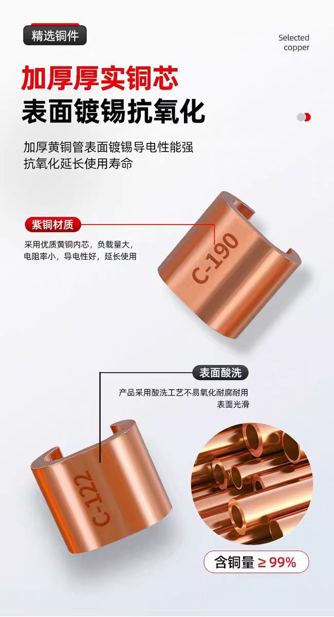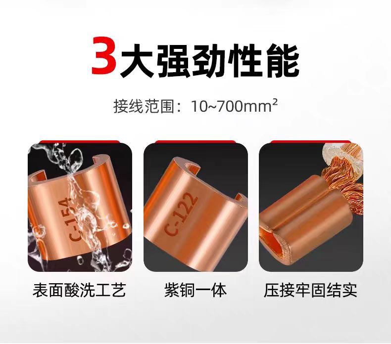 型号 CCT-10铜线【6-10平方】加厚,CCT-16铜线【8-16平方】加厚,CCT-20铜线【14-20平方】加厚,CCT-26铜线【16-26平方】加厚,CCT-44铜线【25-44平方】加厚,CCT-60铜线【40-60平方】加厚,CCT-76铜线【60-76平方】加厚,CCT-98铜线【70-98平方】加厚,CCT-122铜线【98-122平方】加厚,CCT-154铜线【122-154平方】加厚,CCT-190铜线【155-190平方】加厚,CCT-240铜线【191-240平方】加厚,CCT-288铜线【241-288平方】加厚,CCT-365铜线【289-365平方】加厚,CCT-450铜线【366-450平方】加厚,CCT-560铜线【451-560平方】加厚,CCT-700铜线【561-700平方】加厚