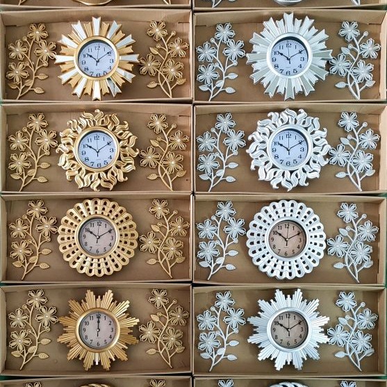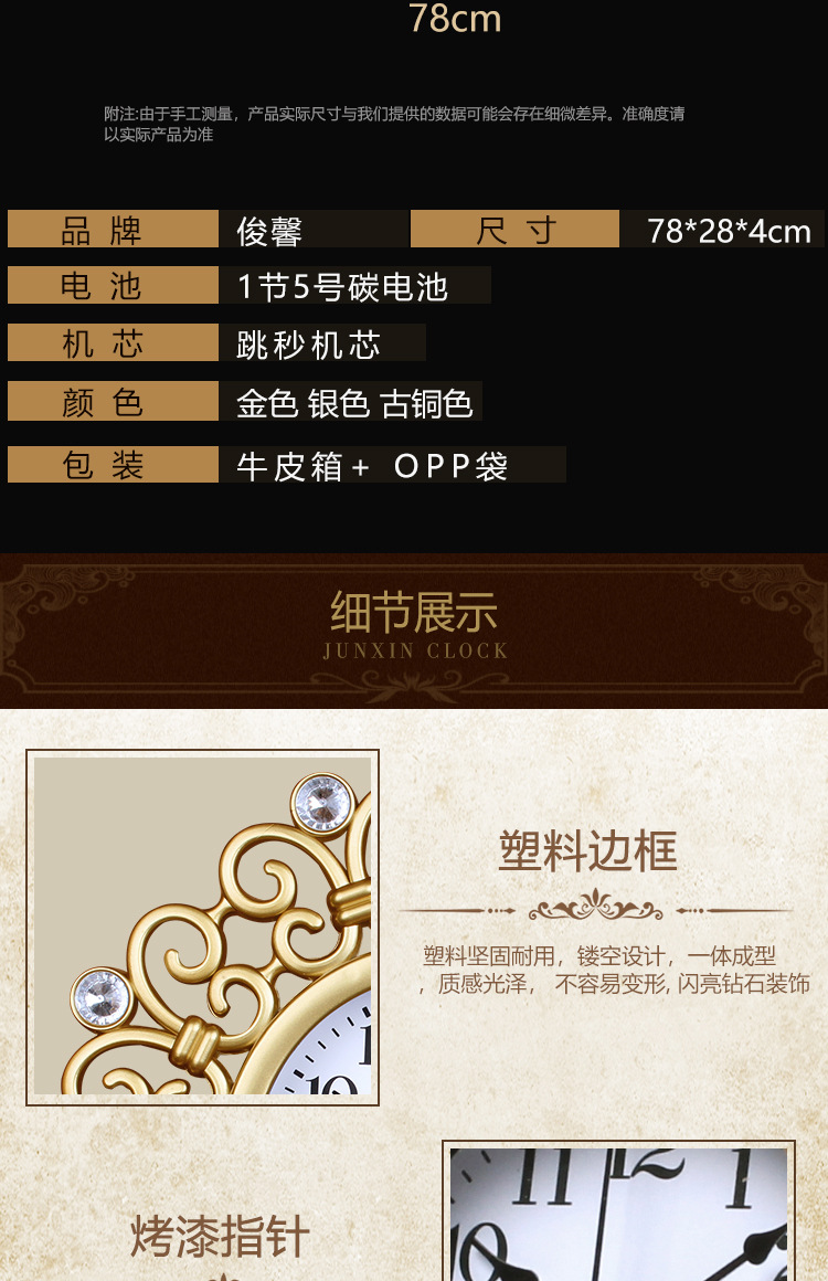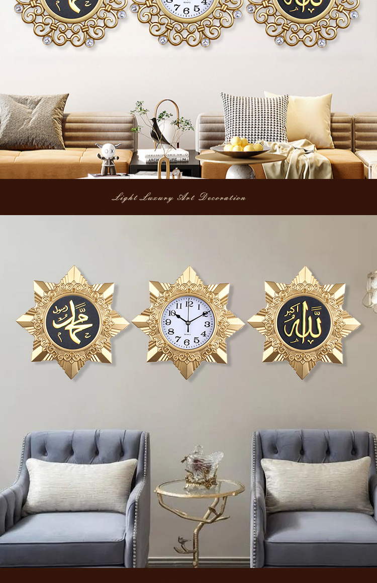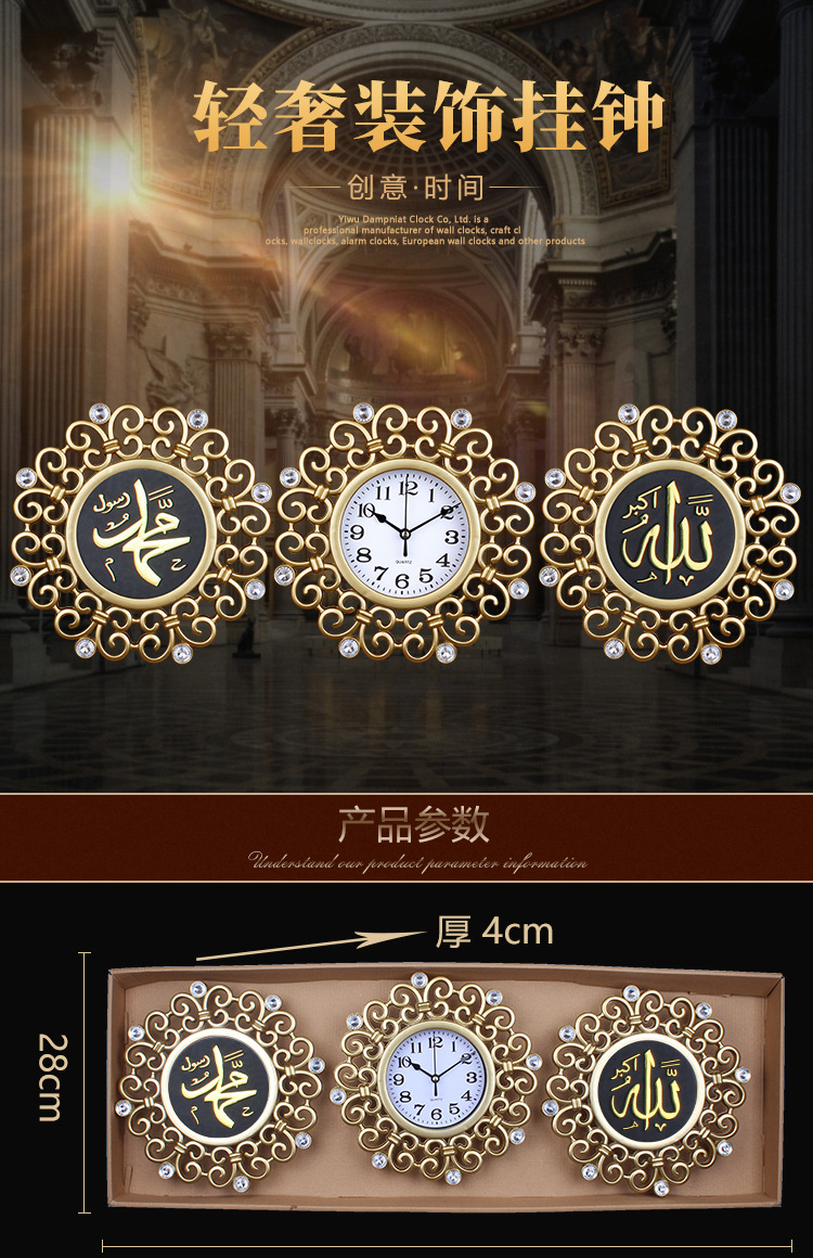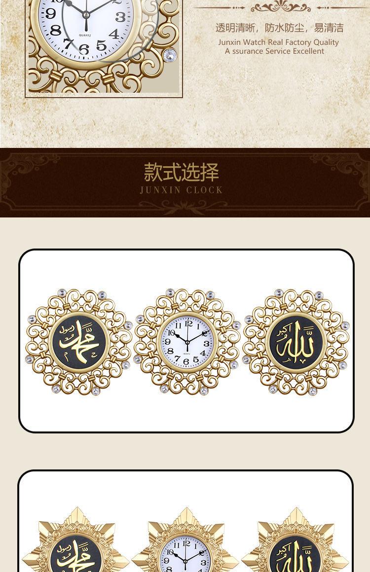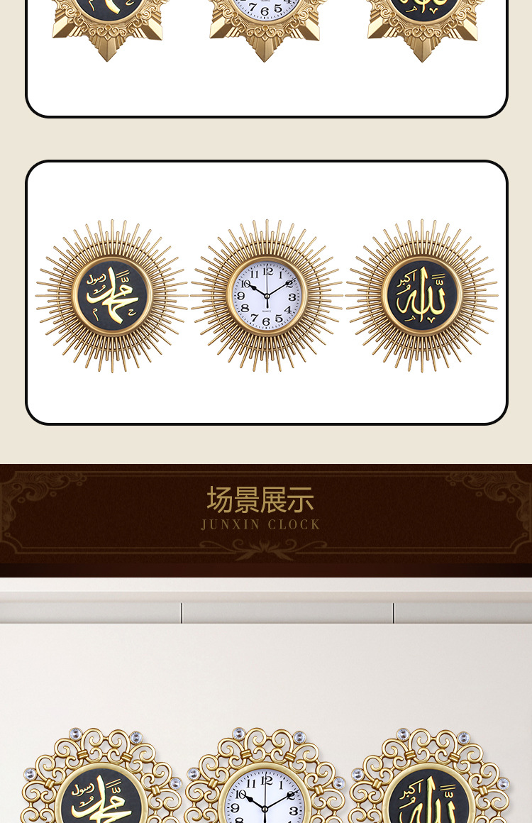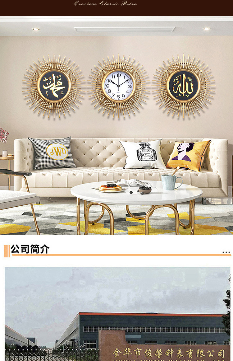 东南亚轻奢家用时钟套组创意墙面装饰挂壁钟清晰边框镂空石英钟