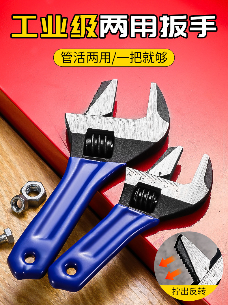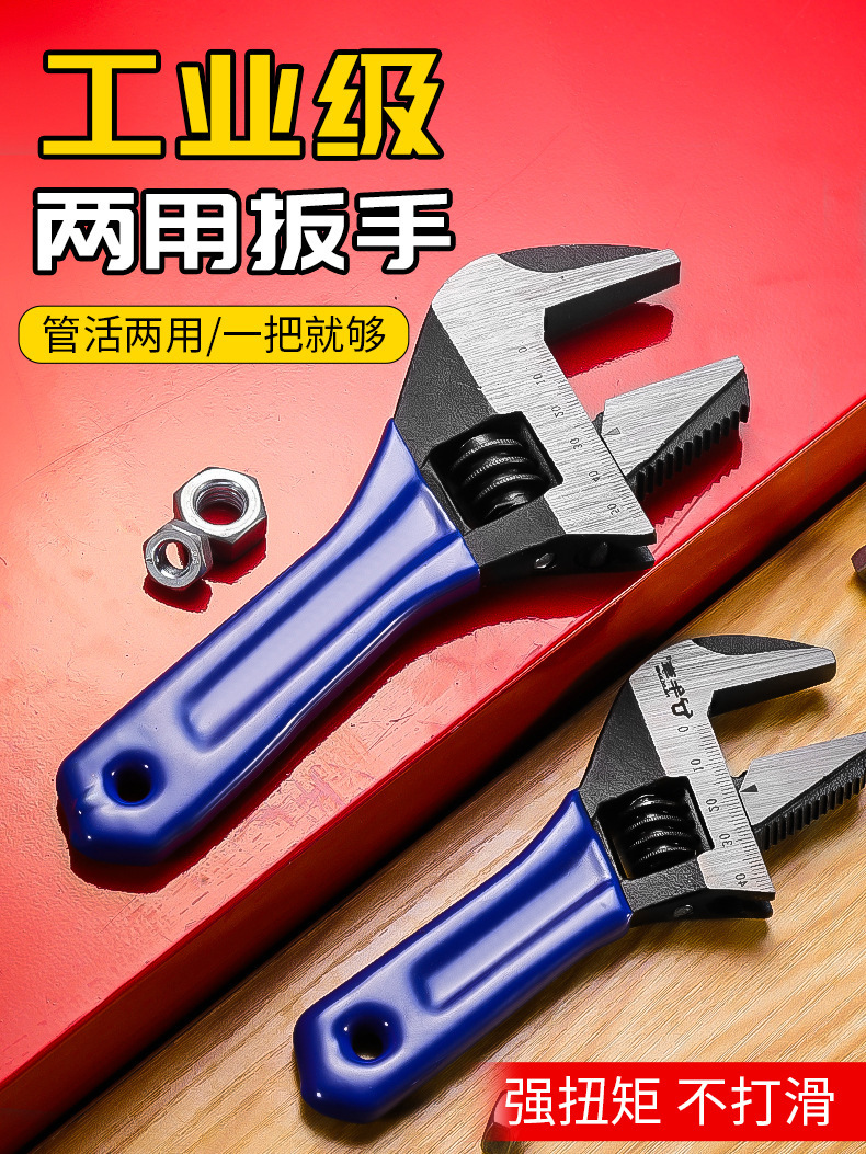 工业级管活两用活动扳手 新款可调节加厚加硬多功能两用活动扳手