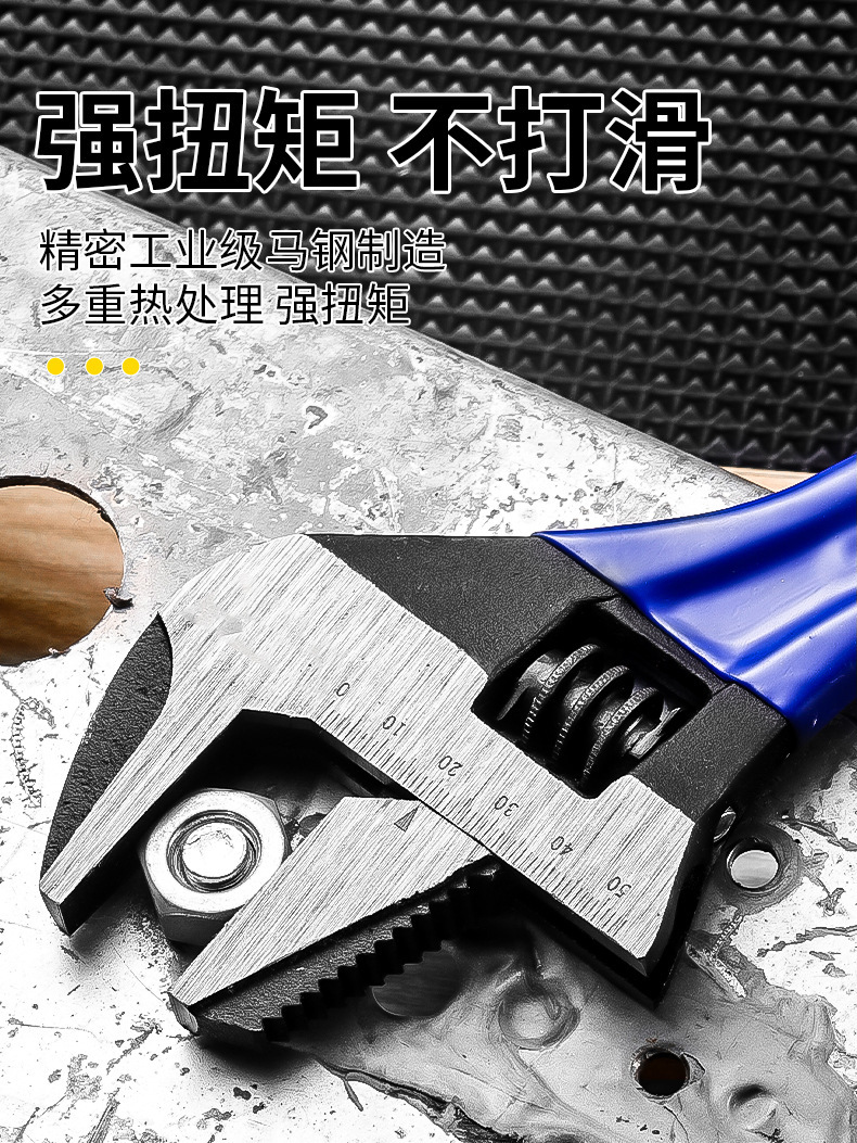 工业级短柄万用多功能活口扳手 家用防滑6寸大开口活口扳手