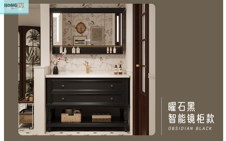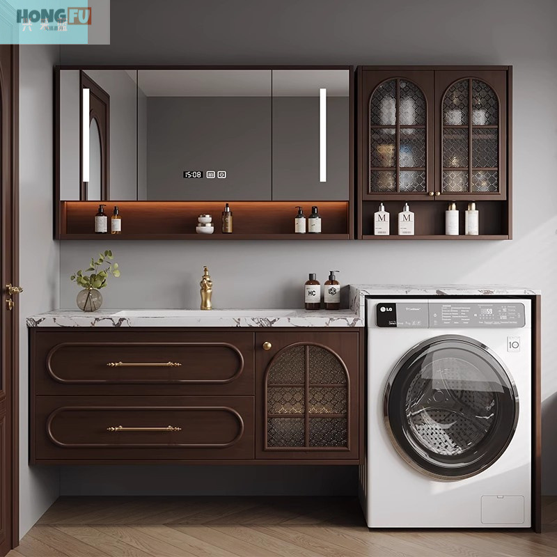 鸿福嘉月中古风浴室柜洗衣机一体柜组合卫生间岩板一体洗漱台洗手