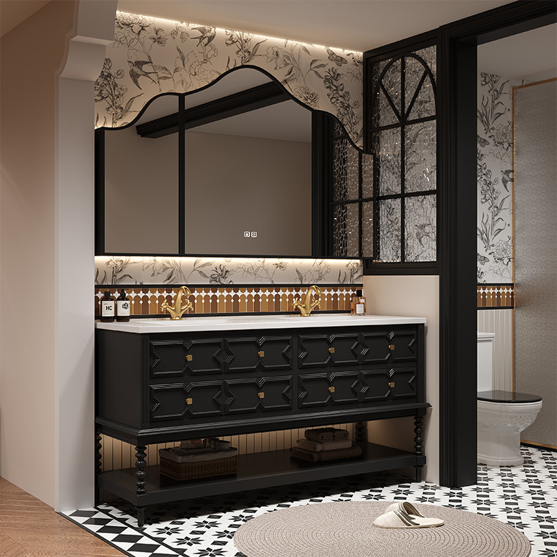 フランス式レトロ浴室キャビネットセットアメリカ式トイレ洗面台床置き式岩板洗面盤スマートキャビネット