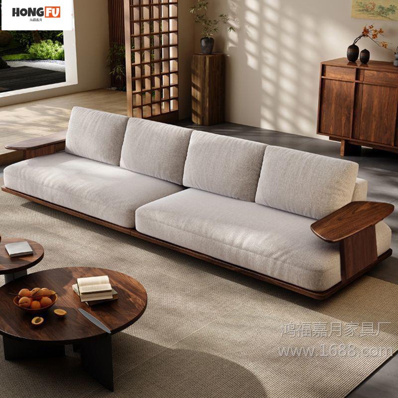 真皮沙发头层牛皮黑胡桃实木意式极简客厅四人位直排小户型家用