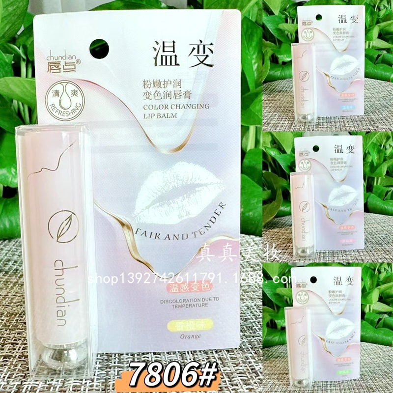 净含量 793#粉嫩温变润唇膏(味道混搭),592#清透变色唇膏(味道混搭),8019#粉嫩变色唇膏,7806#粉嫩变色唇膏PVC(味道混搭)