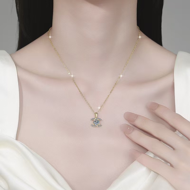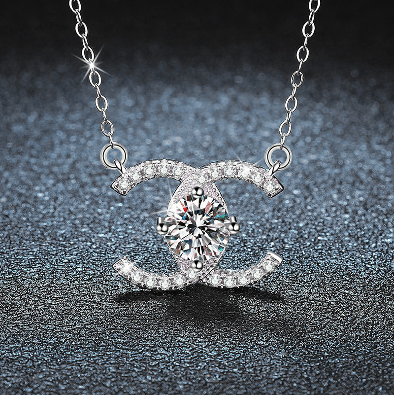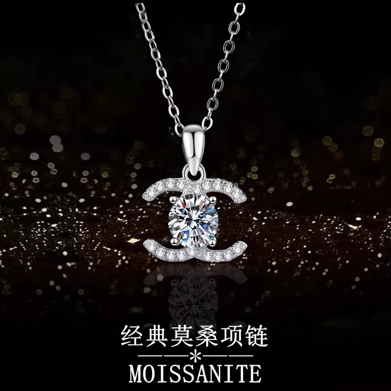 跨境热销18k莫桑石项链女双C小香风高级欧美银饰工厂一件批发