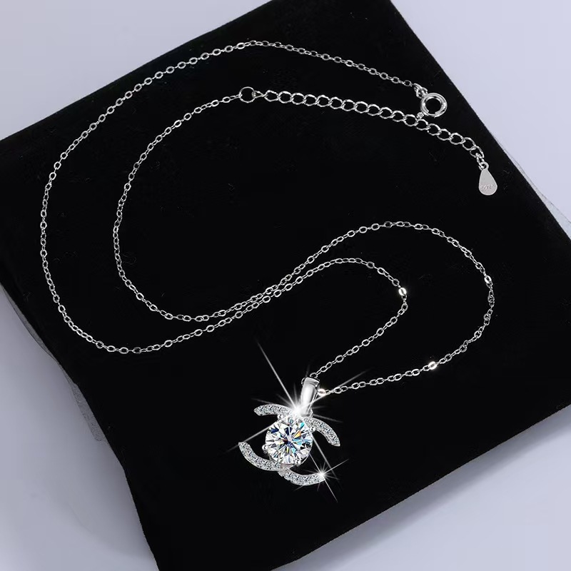 クロスボーダーs925シルバーネックレス女莫桑石ネックレス小香風高級感1カラットD色莫桑石ネックレス女