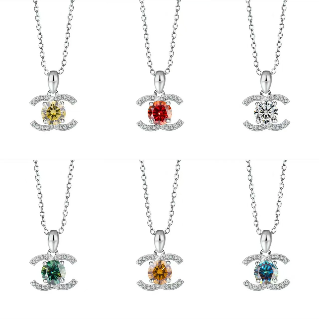 国境を越えた新製品 925 スターリングシルバーネックレススモールフレグランスダブル C 鎖骨チェーンモアッサナイトペンダント 1 カラット D カラー生放送供給