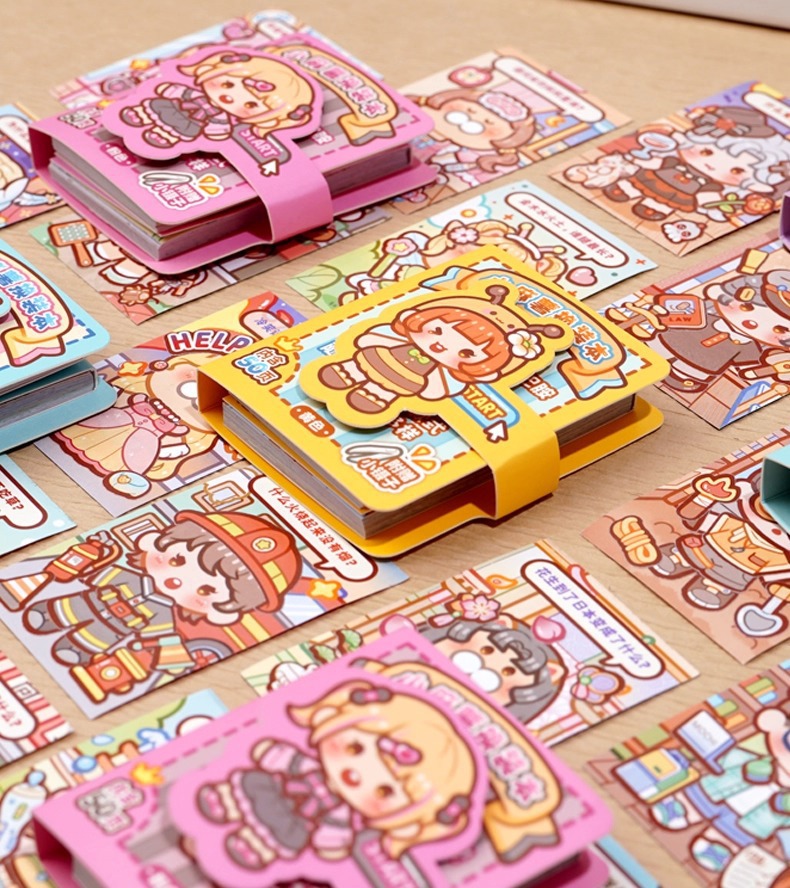 小麻薯贴纸书女孩儿童豆豆本换装书diy玩具免裁剪迷你换装贴纸画