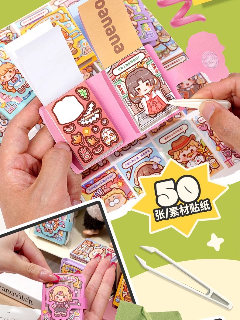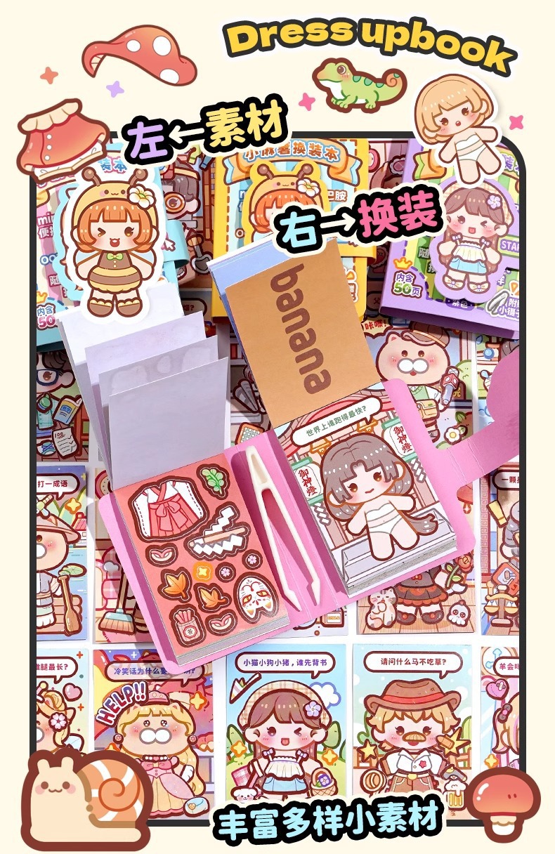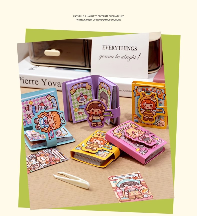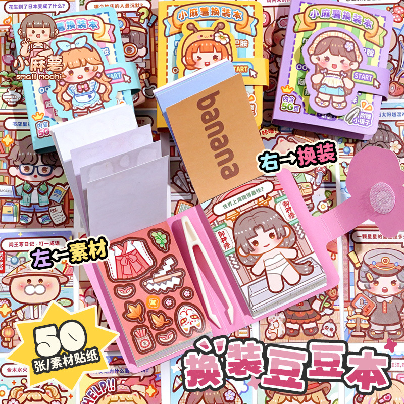 小麻薯换装贴纸豆豆本迷你小号上课摸鱼小玩具女孩公主手帐贴纸书