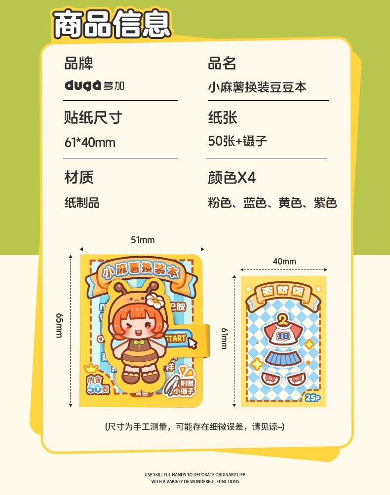 小麻薯换装贴纸迷你豆豆本随身便携口袋本可爱高颜值贴纸儿童女孩