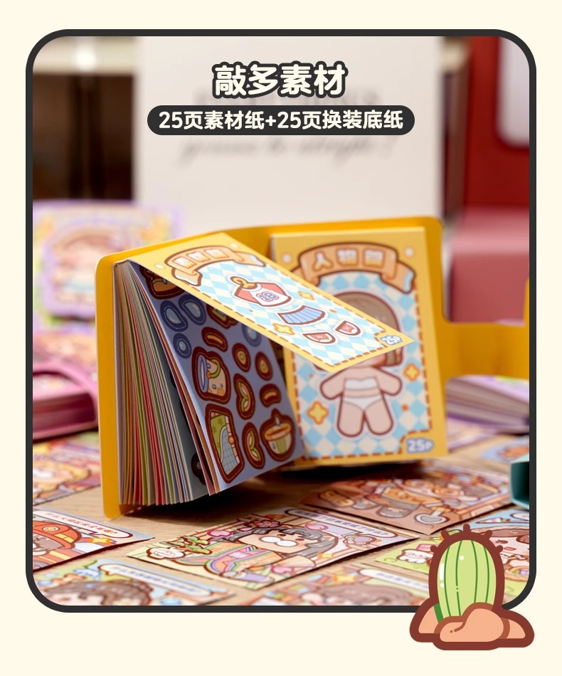 小麻薯换装贴纸迷你豆豆本可爱免裁剪手账贴纸创意场景换装贴纸本