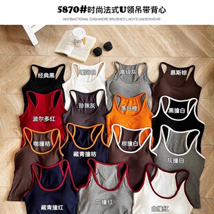 美背小吊带背心一体型ブラ、胸パッド付き、保温性、多用途、胸パッド付きインナーベスト、レディースインナーウェア