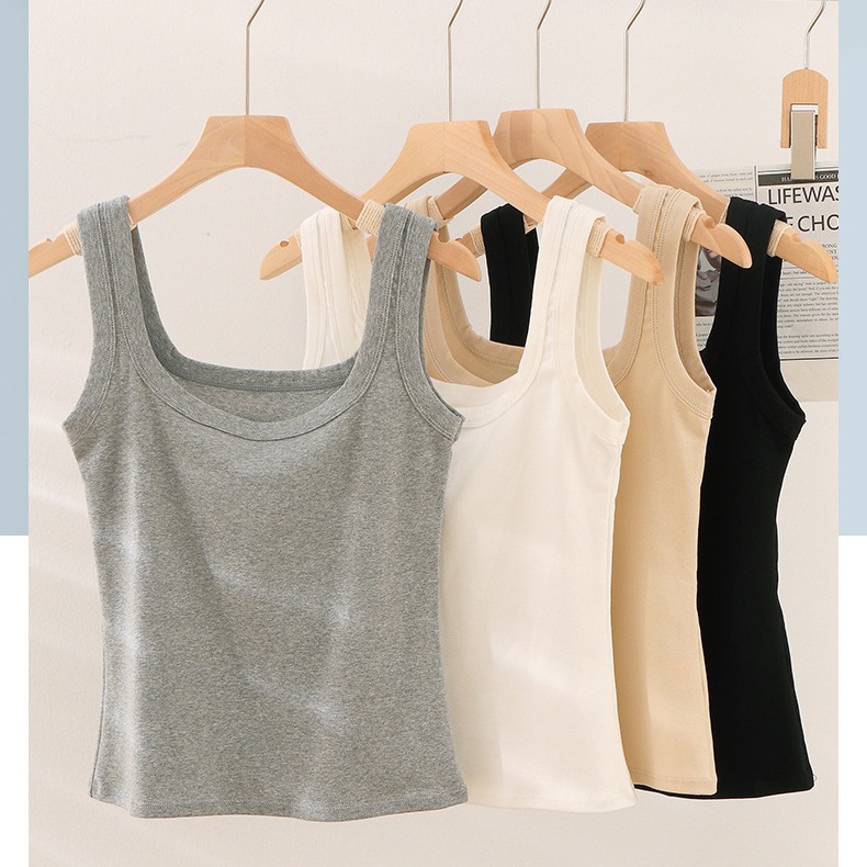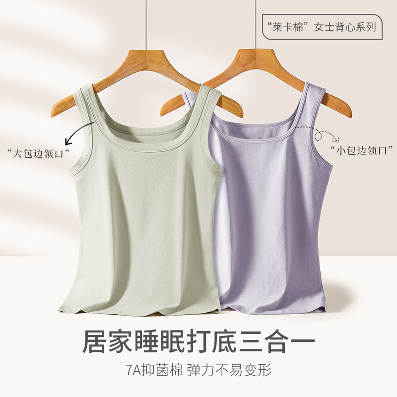 春夏純綿キャミソールの新商品の方襟ベストの女性の薄いタイプの修身の中に袖なしの外で底のシャツを着ます。