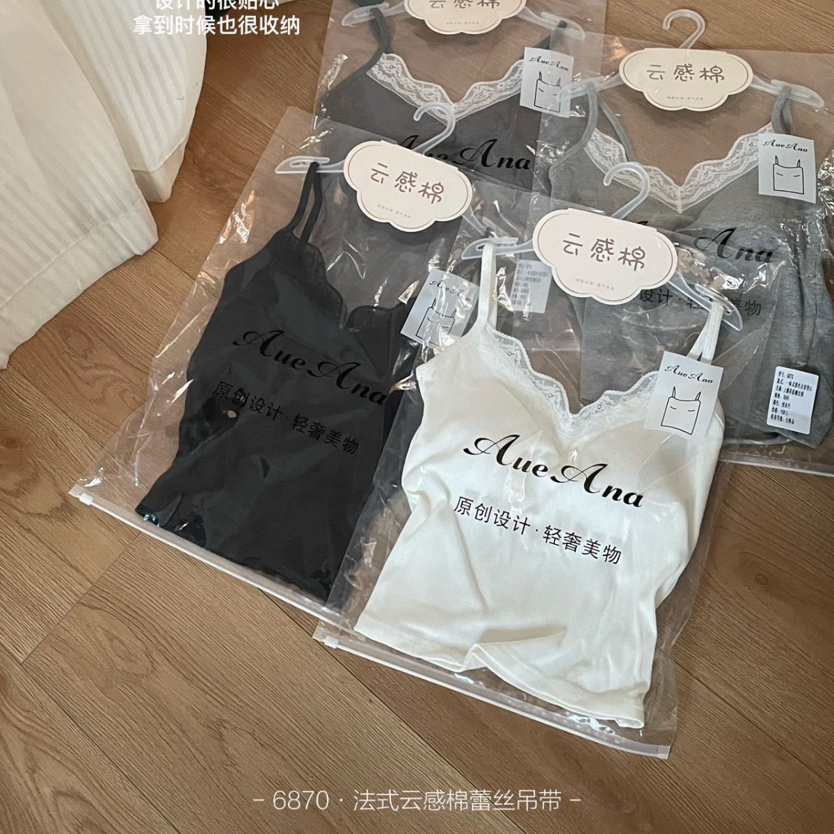 フレンチクラウドフィールコットンレース美しいバックサスペンダーベルト胸パッド付きボトミングキャミソールブラジャーオールインワン胸パッド付き女性用ベスト