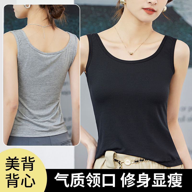纯棉宽肩背心女士内搭夏季薄款外穿美背全棉圆领上衣防走光打底衫