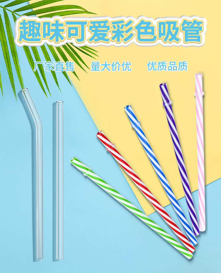 螺纹彩色吸管双色吸管塑料吸管冰杯饮料吸管可重复使用玻璃吸管