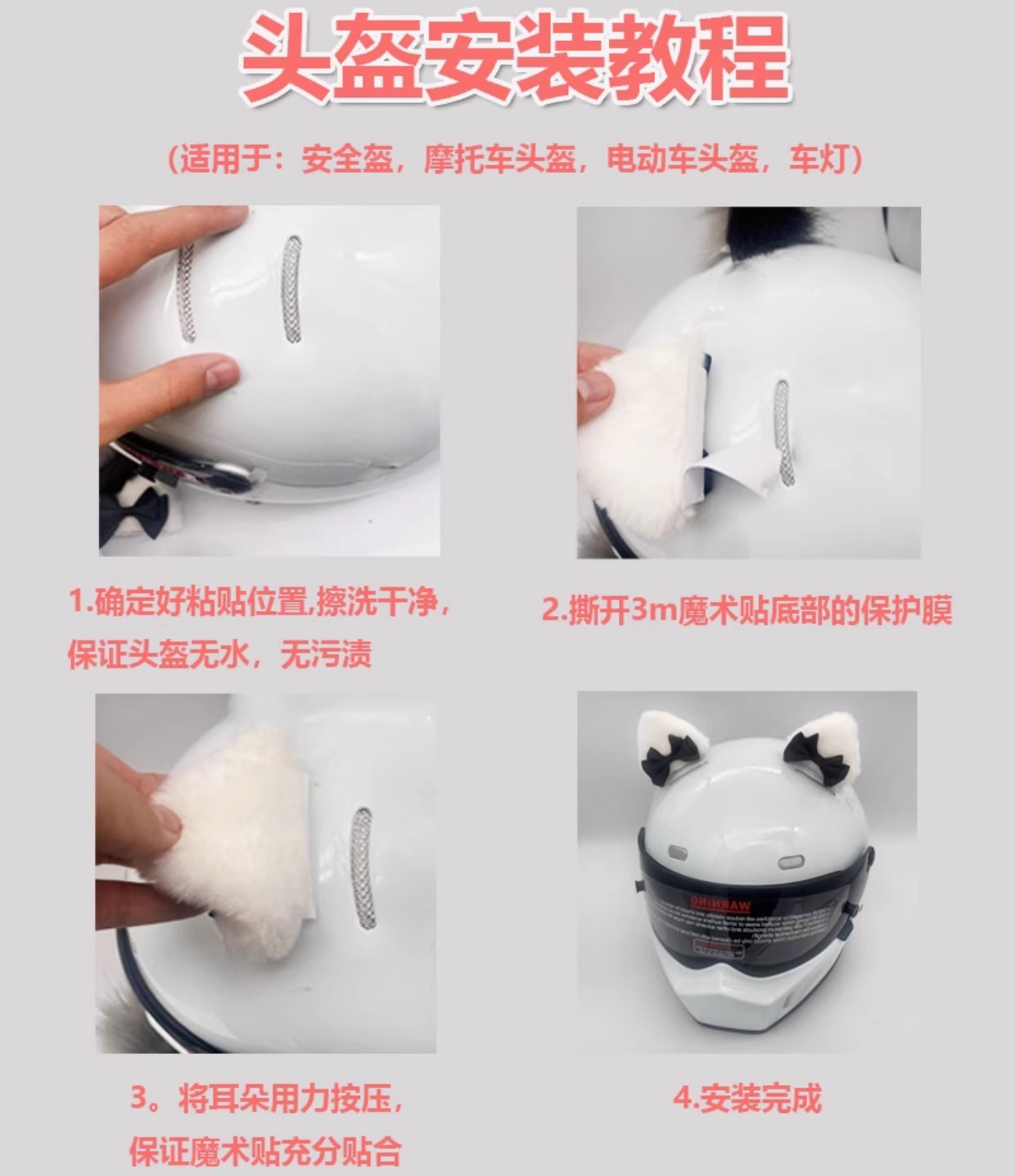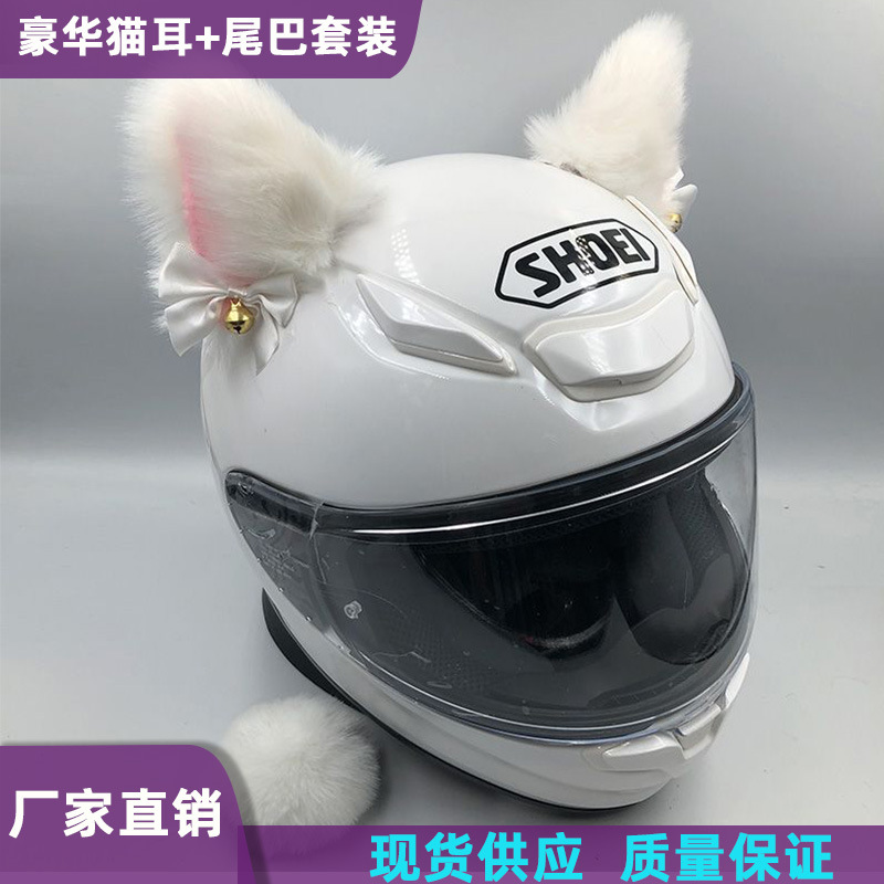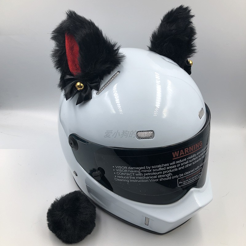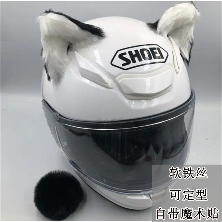 头盔装饰品猫耳朵摩托车电动车女骑士毛绒耳朵配饰滑雪头盔可拆卸