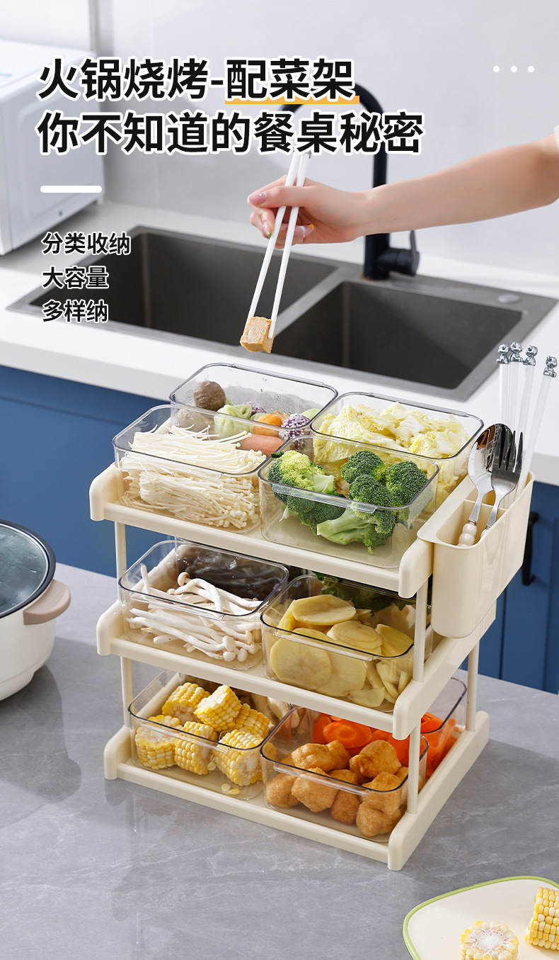 家庭用多機能おかずトレイ、鍋材料トレイ、キッチン食品準備アーティファクト収納、高価値プラスチック多層収納ラック