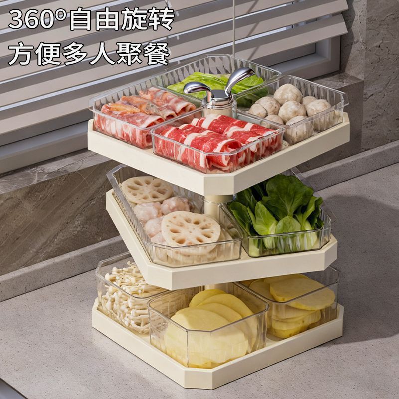 厨房旋转火锅拼盘分格配菜盘三层备菜盘神器家用多功能托盘置物架