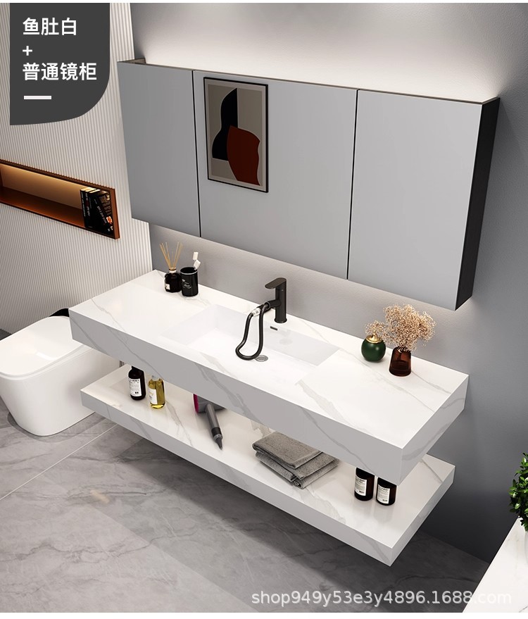 軽豪華熱曲げ岩板一体盆片面盆ホテル民宿トイレ洗面器シームレス盆浴室キャビネットセット