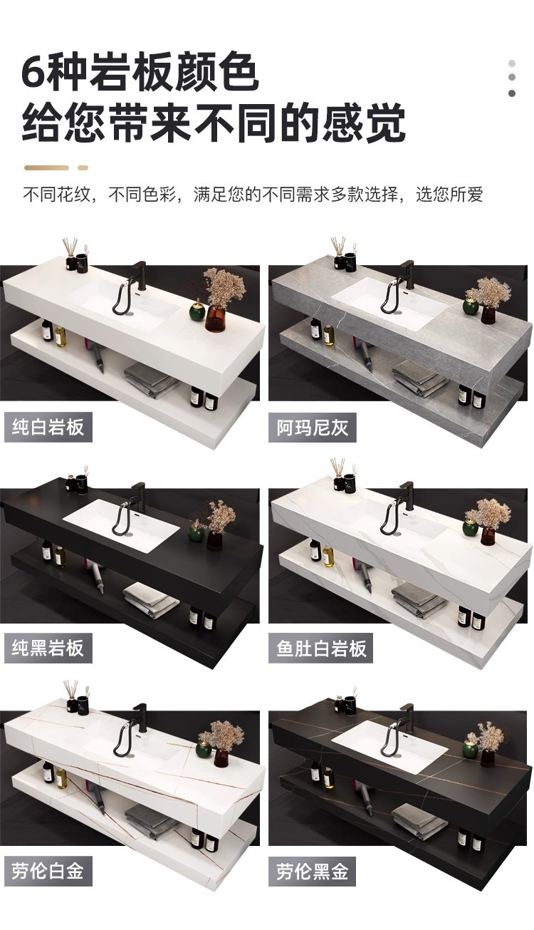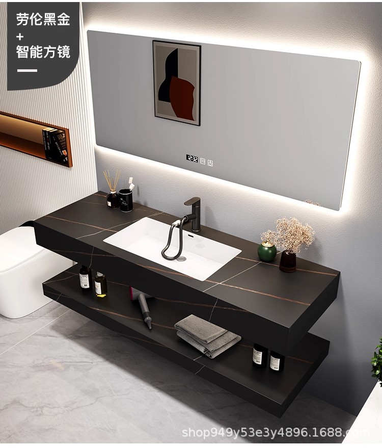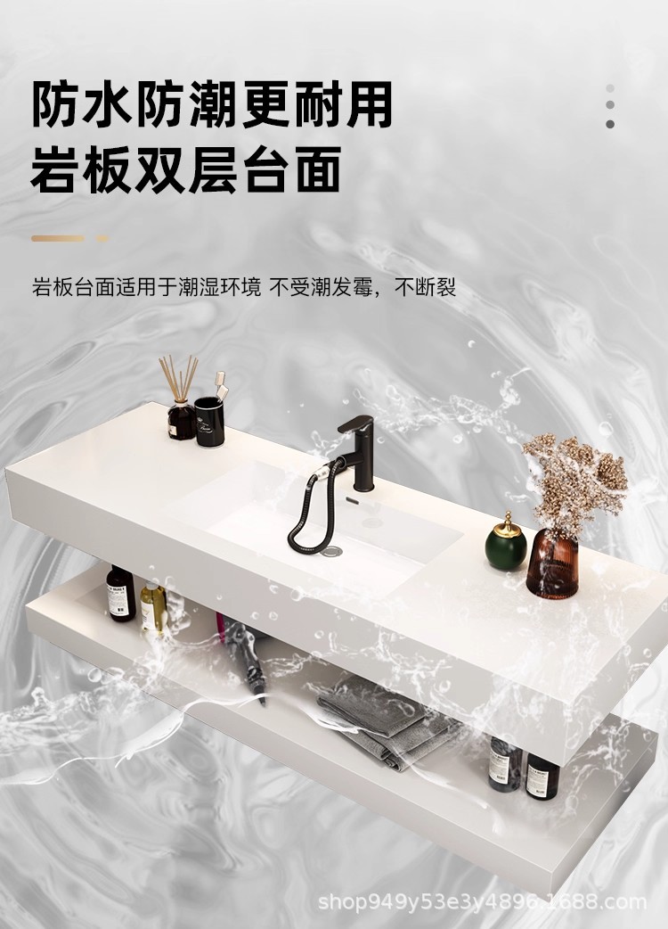 现代简约双层岩板石浴室一体盆卫生间洗漱台洗手池洗脸盆组合